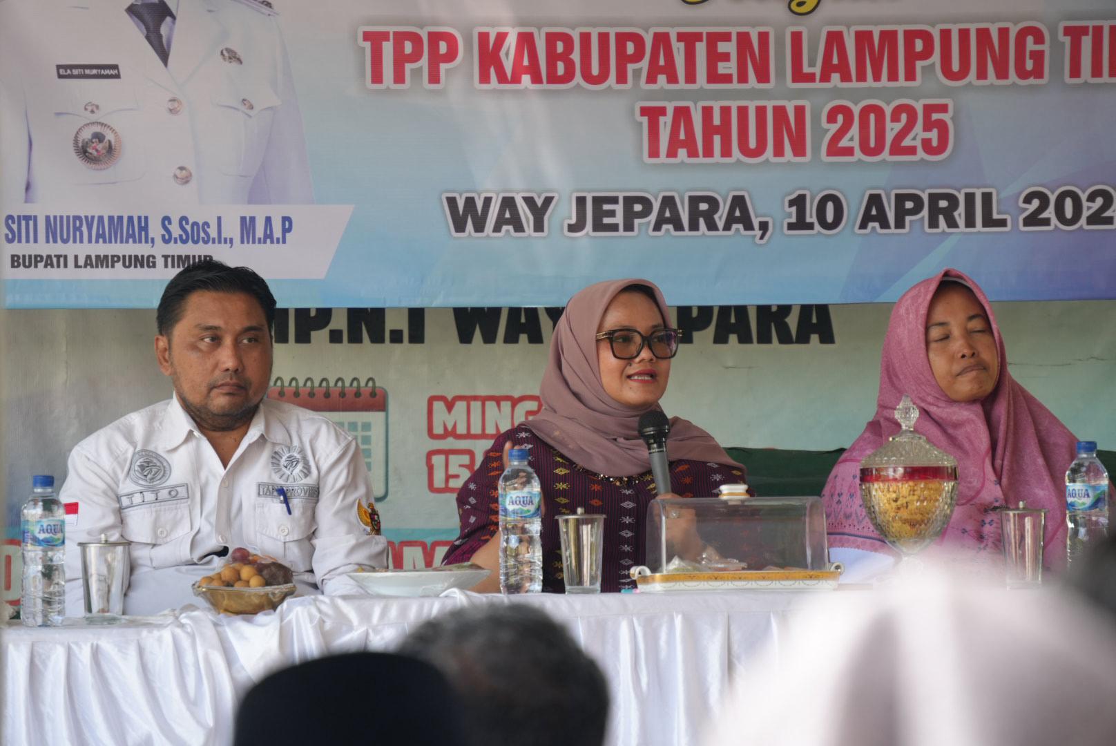 Lampung Timur – Bupati Lampung Timur, Ela Siti Nuryamah, menggelar silaturahmi bersama 112 Tenaga Pendamping Profesional (TPP) desa dalam sebuah pertemuan yang berlangsung di wilayah Kecamatan Way Jepara, Kamis (10/4/2025). Agenda ini juga dimanfaatkan untuk membahas kemajuan pembangunan di Kabupaten Lampung Timur.